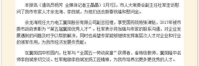 襄阳新闻:第五届襄阳优秀人才余龙海