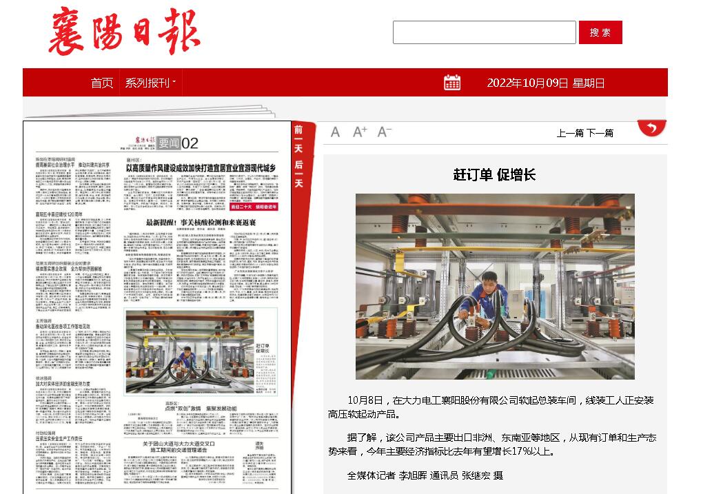 10月8日,在大力电工襄阳股份有限公司软起总装车间,线装工人正安装高压软起动产品。