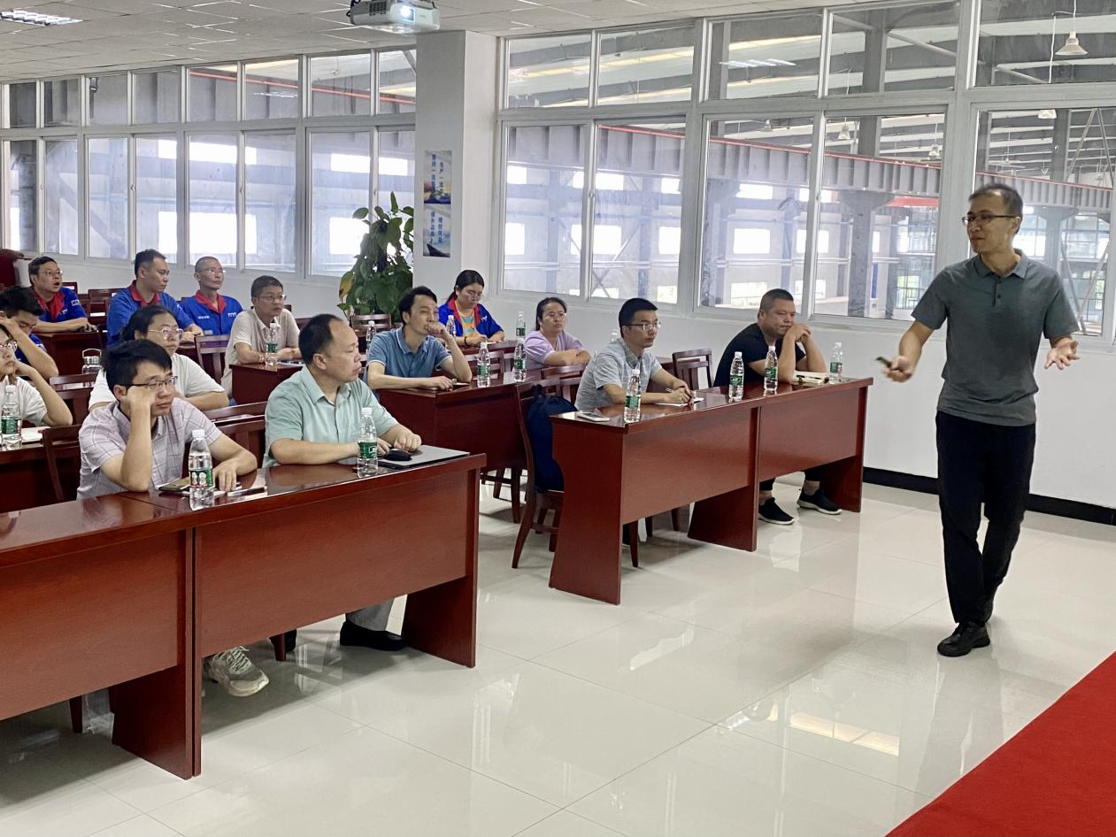 唐奡博士先参观了公司钒电池电堆生产线,钒电池电堆和电解液测评平台,考察了园区内1MWh钒电池示范储能电站,然后在大力讲堂进行了主题为“液流电池技术开发与研究进展”的学术交流。